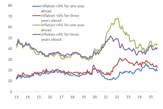 Figure 2: Inflation expectations: > 4% and <0% in the next 1-3 years