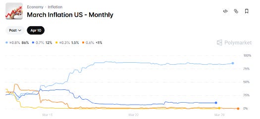 As the odds of oil reaching extreme pricing recede, it should also bring down the odds of a hike, which happened today; a hike by the fall is now below 35%, but on prediction markets, it is 22%.