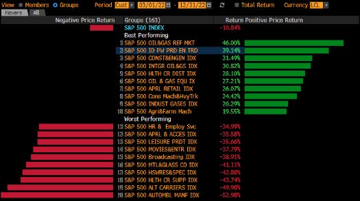 Table 1: 2022 S&P sector winners/losers during inflation surge