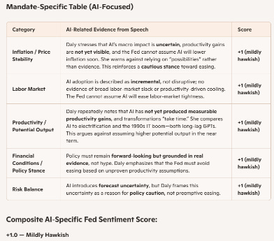 Figure 3: Daly’s speech LLM score; hawkish on AI