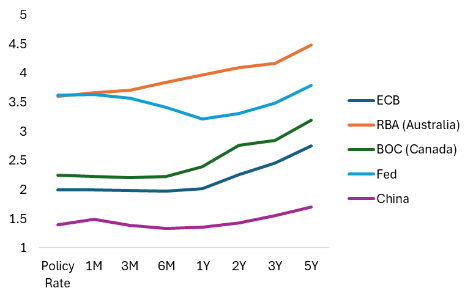 Figure 3: Implied rates path global central banks (%)